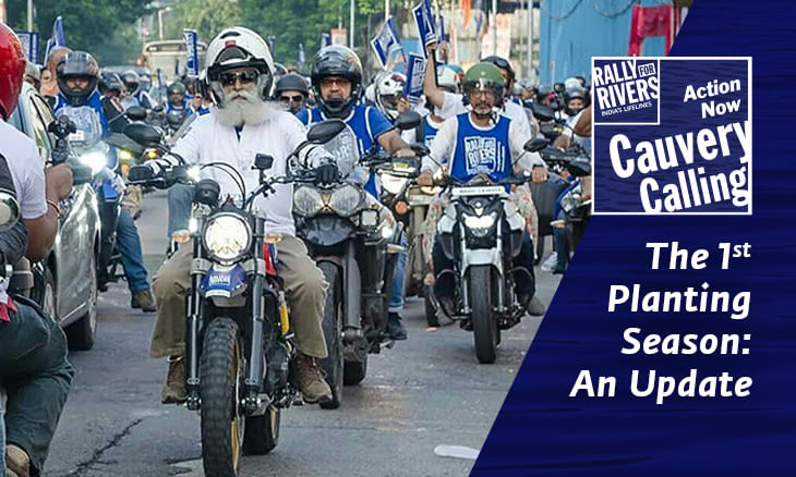 In September 2019, Sadhguru undertook the massive mission to revive the Cauvery River and Basin, and launched the 12-year-long Cauvery Calling Movement. Leading a motorbike rally from Talacauvery, the origin of the Cauvery, to Thiruvarur, where she meets the sea, Sadhguru rode to generate awareness about the urgent need for action on the part of our generation.
