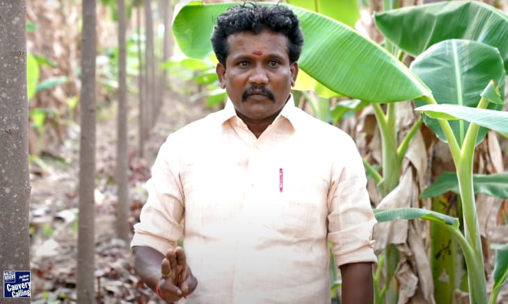 Guidance came through the initiative “Cauvery Calling,” which offered Velankanni a novel farming method. After testing the soil and water on his farm, experts from Cauvery Calling advised Velankanni on planting mahogany trees, providing saplings at just Rs. 3 each. Embracing this new direction, Velankanni planted 400 mahogany saplings, interspersed with 900 banana trees, in a well-planned intercropping system on his farm.