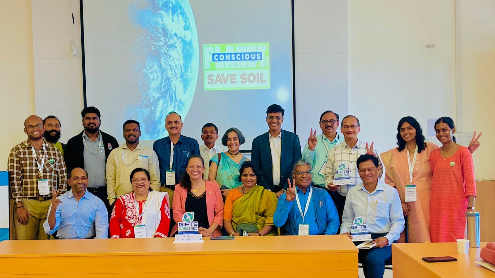 Save Soil joined GIFTS Summit shaping sustainable development as a Supporting and Knowledge Partner. As part of our engagement, we hosted a high-level roundtable discussion on “How Geospatial Technology Can Support National Soil Health Policy in Assessment, Planning, Monitoring, and Evaluation.” The session began with a presentation on the Save Soil movement, followed by a distinguished panel featuring: Dr. Bharat Kakade (President & Managing Trustee, BAIF), Dr. Chandrashekhar Biradar (Chairman & MD, Global Green Growth), Dr. Sultan Singh (Director, HARSAC), Dr. Shirish Ravan, Founder & Director, EarthSight Foundation advancing grassroots sustainability | Former UN Senior Leader driving global programmes in Space & Geospatial Innovation, moderated by Ms. Praveena Sridhar, Chief Science & Policy Officer – Save Soil Movement.