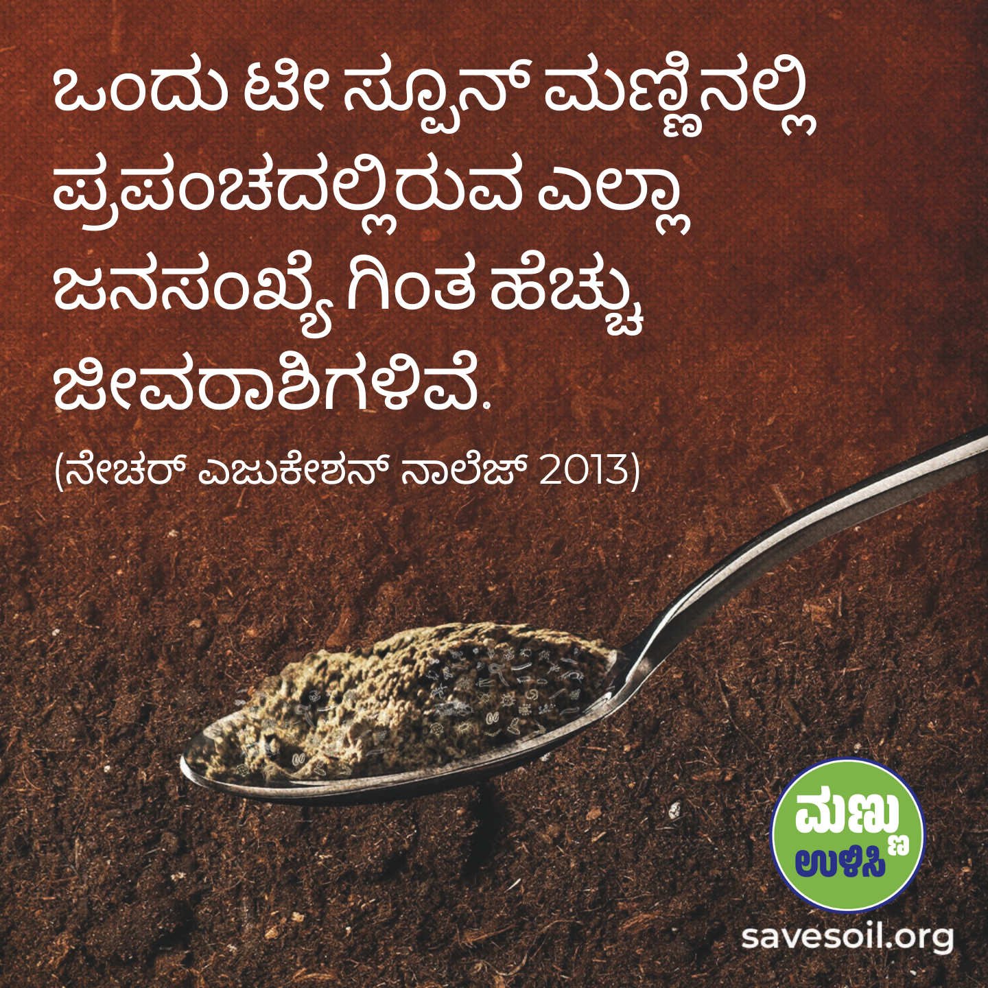 ಒಂದು ಟೀ ಸ್ಪೂನ್ ಮಣ್ಣಿನಲ್ಲಿ ಪ್ರಪಂಚದಲ್ಲಿರುವ ಎಲ್ಲಾ ಜನಸಂಖ್ಯೆ ಗಿಂತ ಹೆಚ್ಚು ಜೀವರಾಶಿಗಳಿವೆ. (ನೇಚರ್ ಎಜುಕೇಶನ್ ನಾಲೆಜ್ 2013) #SaveSoil savesoil.org