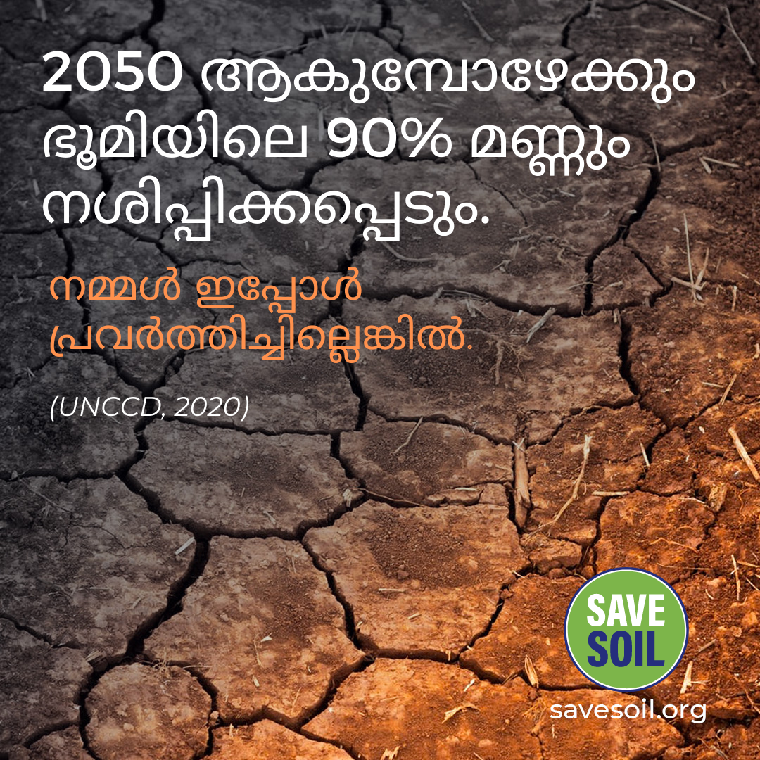2050 ആകുമ്പോഴേക്കും ഭൂമിയിലെ 90% മണ്ണും നശിപ്പിക്കപ്പെടും.നമ്മൾ ഇപ്പോൾ പ്രവർത്തിച്ചില്ലെങ്കിൽ. (UNCCD, 2020) #SaveSoil savesoil.org
